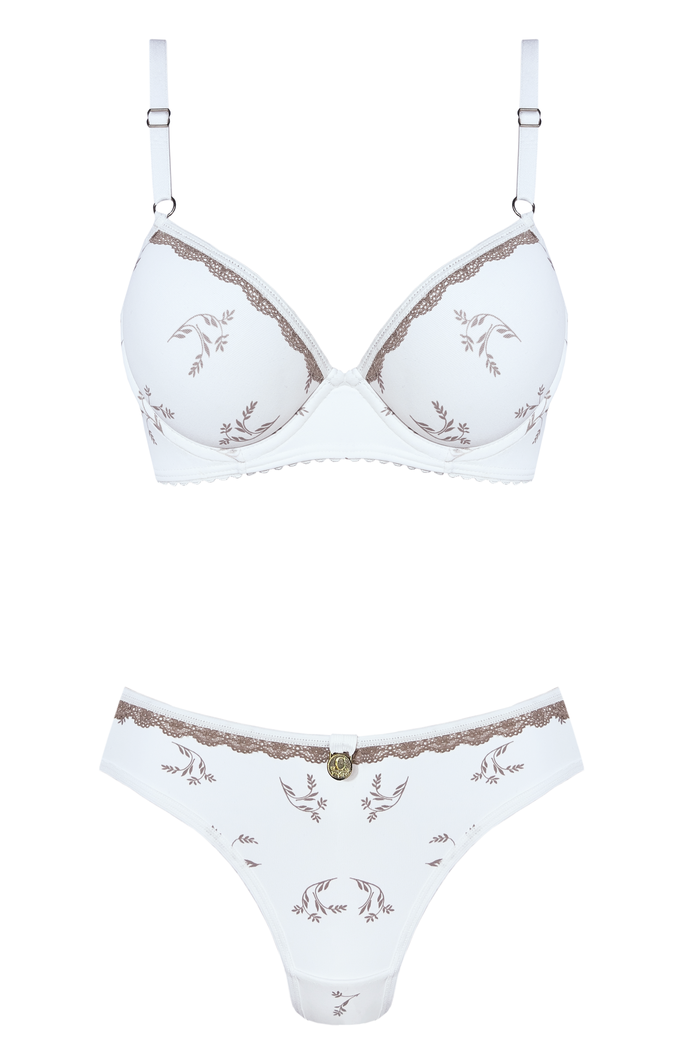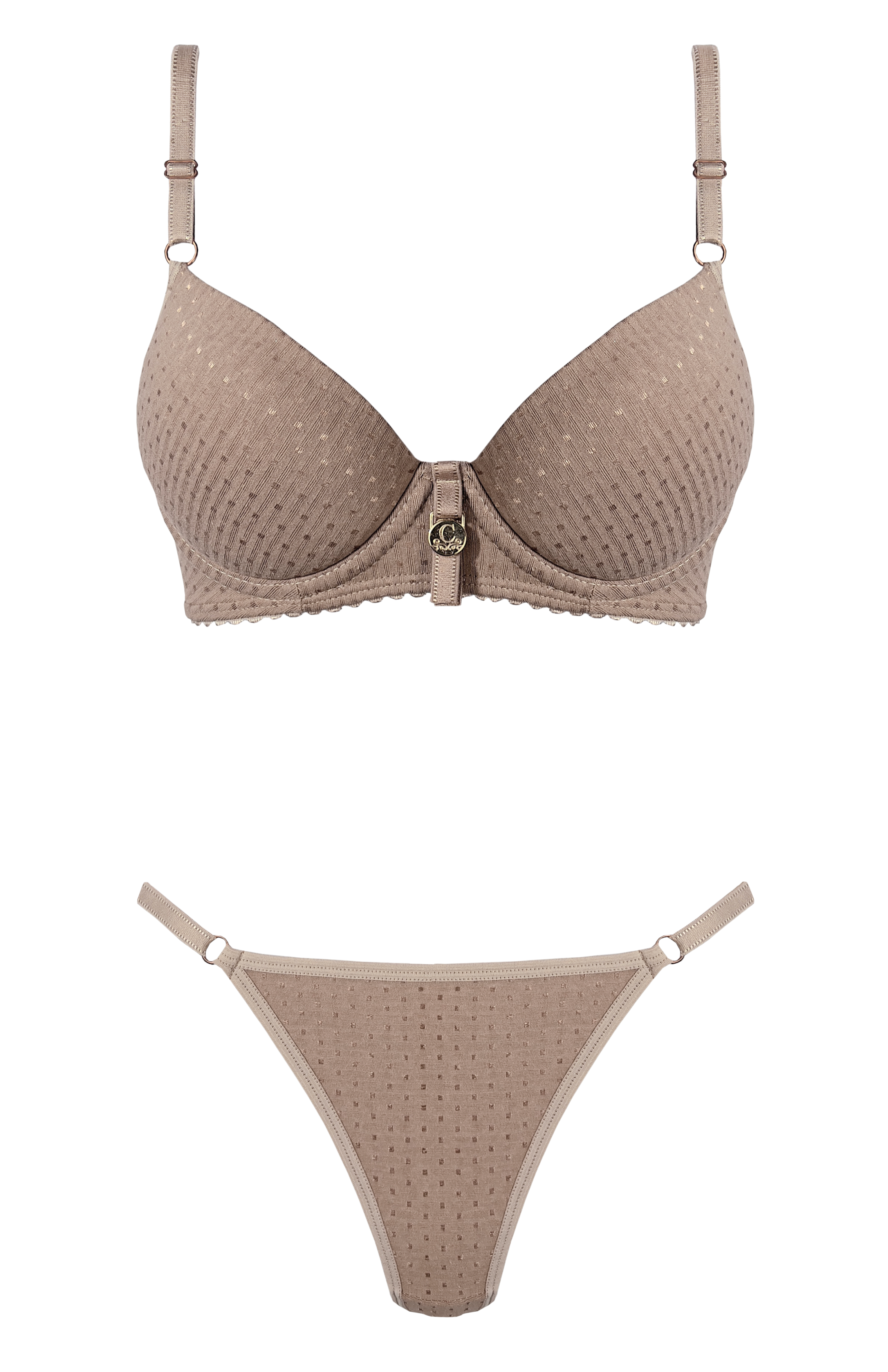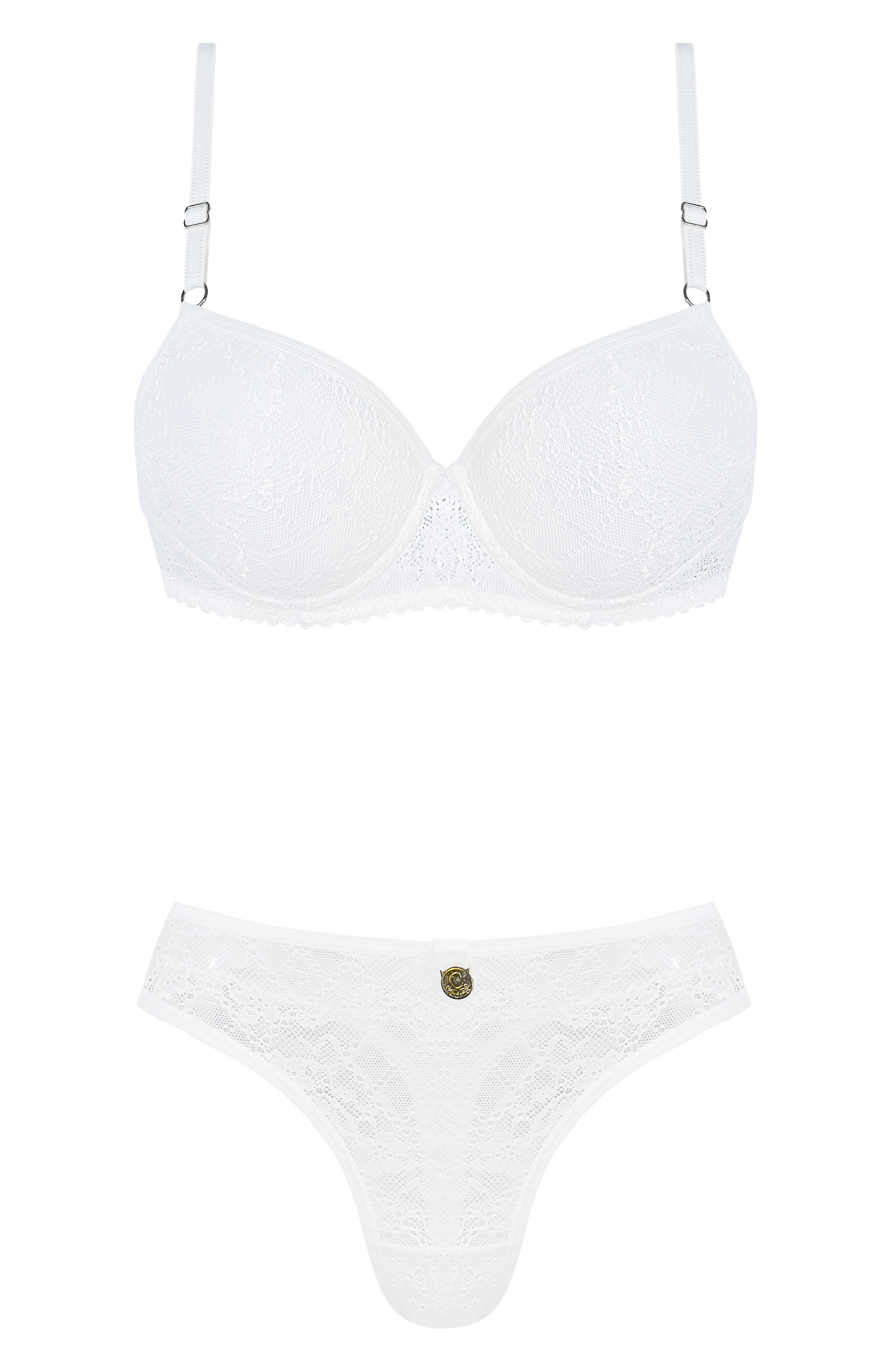 CONJUNTO TAZA SOFT TODO ENCAJE CON COLALESS Y APLIQUE DORADO