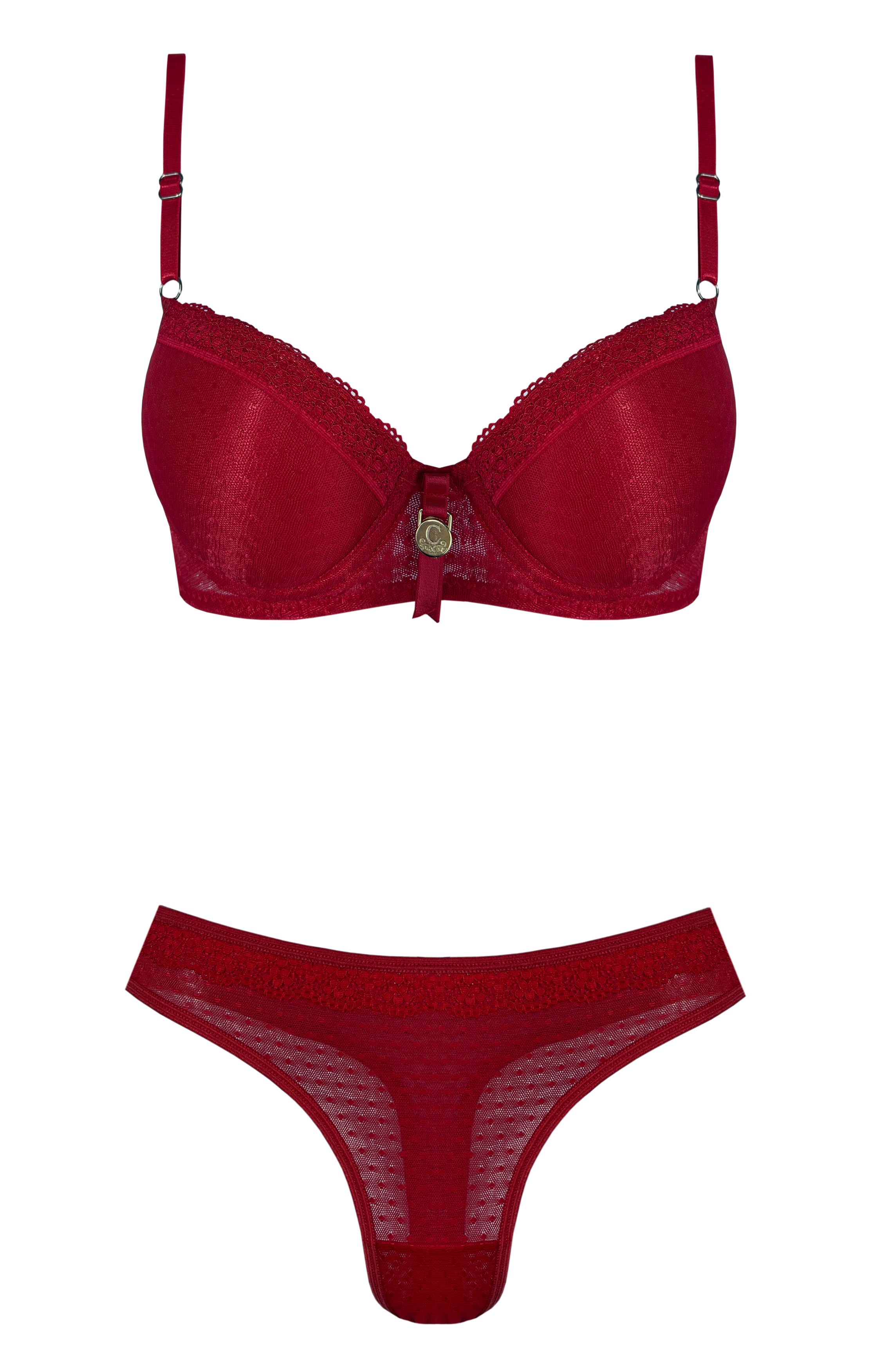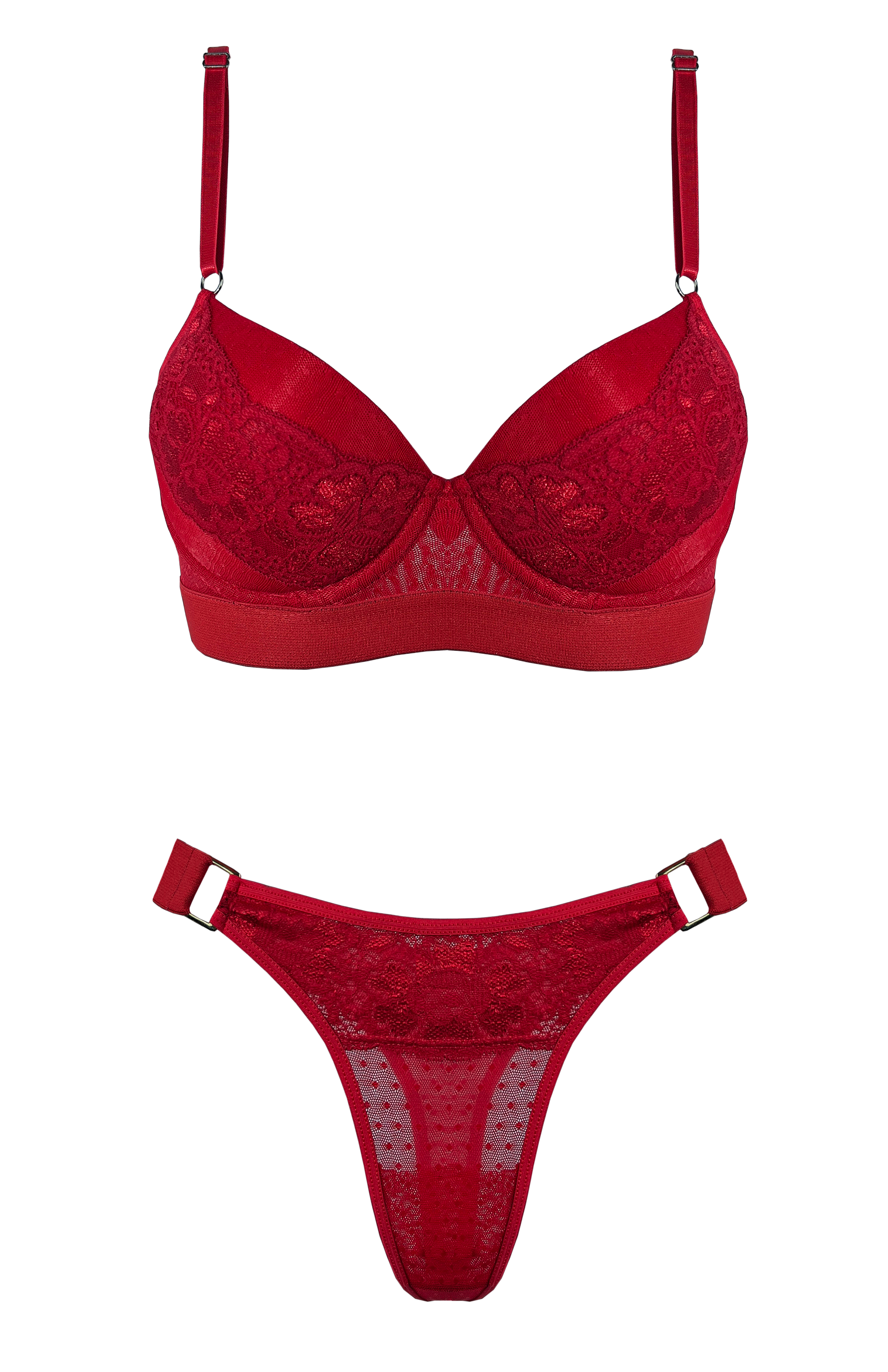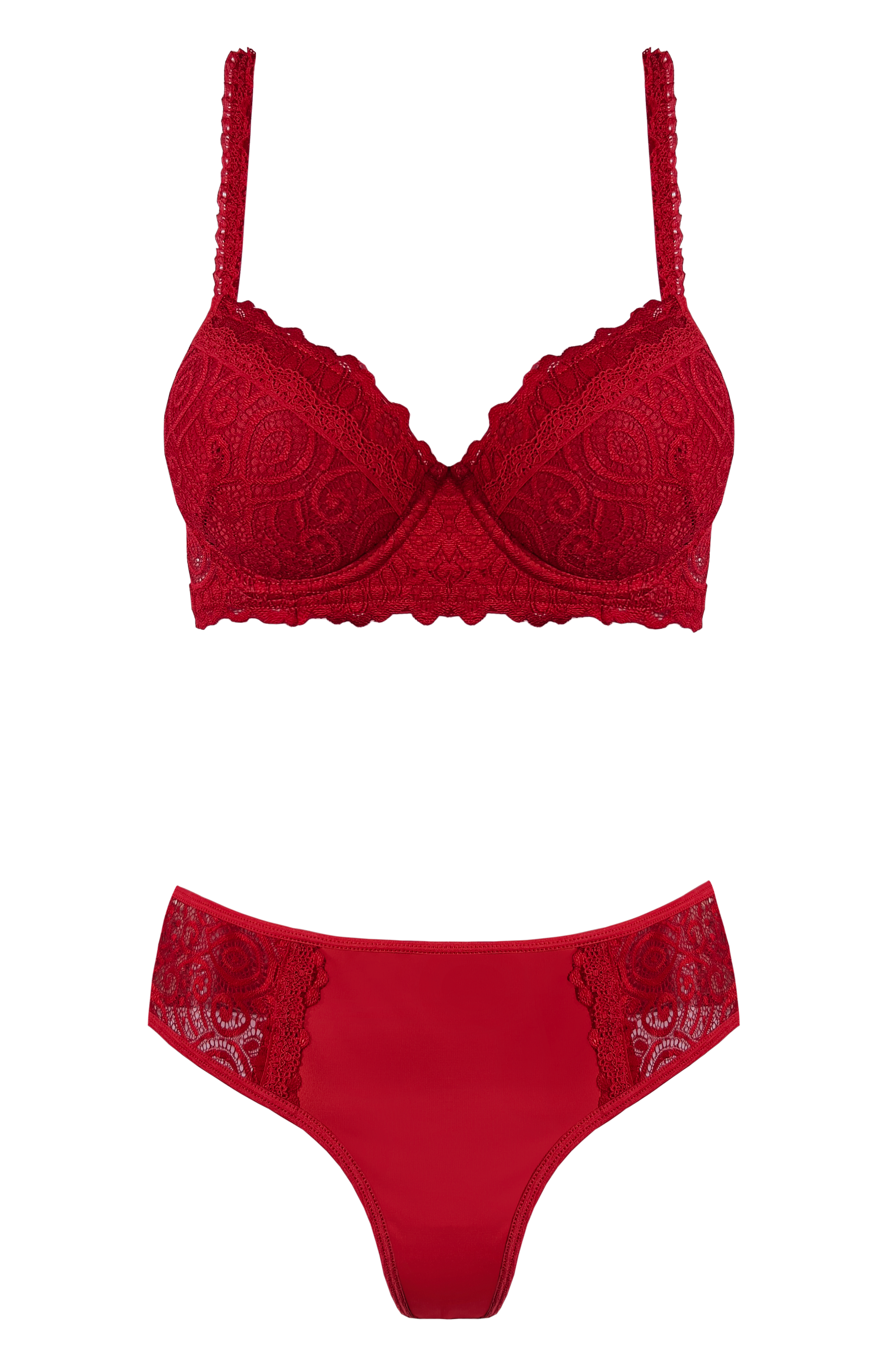 CONJUNTO TAZA SOFT DE ENCAJE RED CON COLA LESS